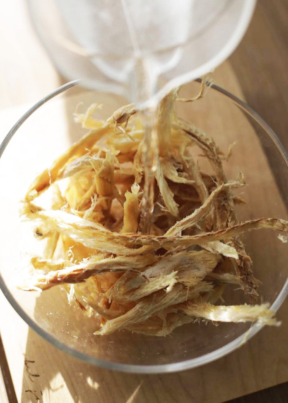 After drying, the pollock is aged in darkness, then carefully tenderized, skinned, and deboned following traditional methods. Each step is done with restraint, preserving the integrity of the flesh rather than forcing it.